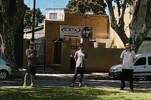 Ataque y vandalismo en el meeting partidario de Renacer: Atacantes Anti Fa provocando a los concurrentes del meeting luego de los ataques / La Plata 24/03/2021