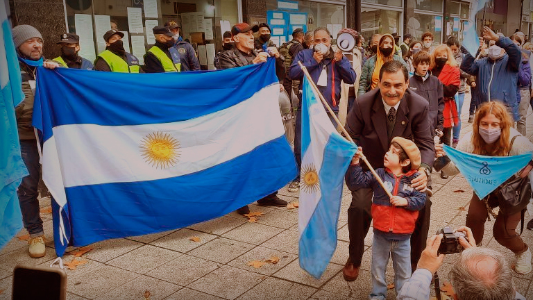 Juéz Alfredo López tomandose fotografías junto a manifestantes que le brindan apoyo a su medida cautelar dictada contra la aplicación de la Ley N° 27.610. – Mar del Plata 09/06/2021