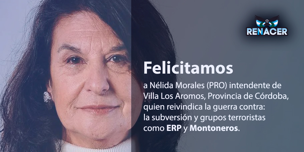 Apoyo a la intendente de la ciudad cordobesa de Villa Los Aromos, Nélida Morales, del partido Propuesta Republicana (PRO), quien reivindica la guerra contra la subversión y grupos terroristas como ERP y Montoneros.